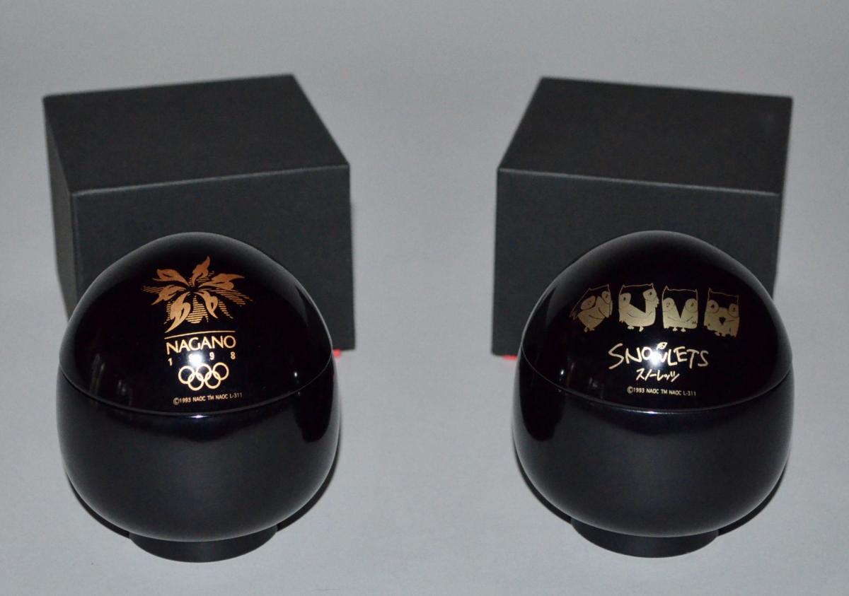 Ensemble de 2 Boites siglés logo et mascottes officiels des JEUX OLYMPIQUES Nagano 1998 OLYMPICS GAMES. Neuf dans son emballage d'origine.