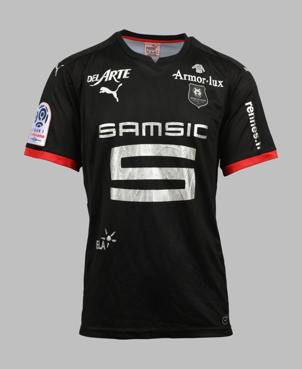 Gardien de but. Maillot N°1 du Stade Rennais Football Club porté lors de la saison 2017-2018 du Championnat de France de Ligue 1. Le joueur participe à 3 rencontres. Match à déterminer. Marque Puma. Fabriqué en Turquie. Taille L. Maillot porté (match worn shirt).