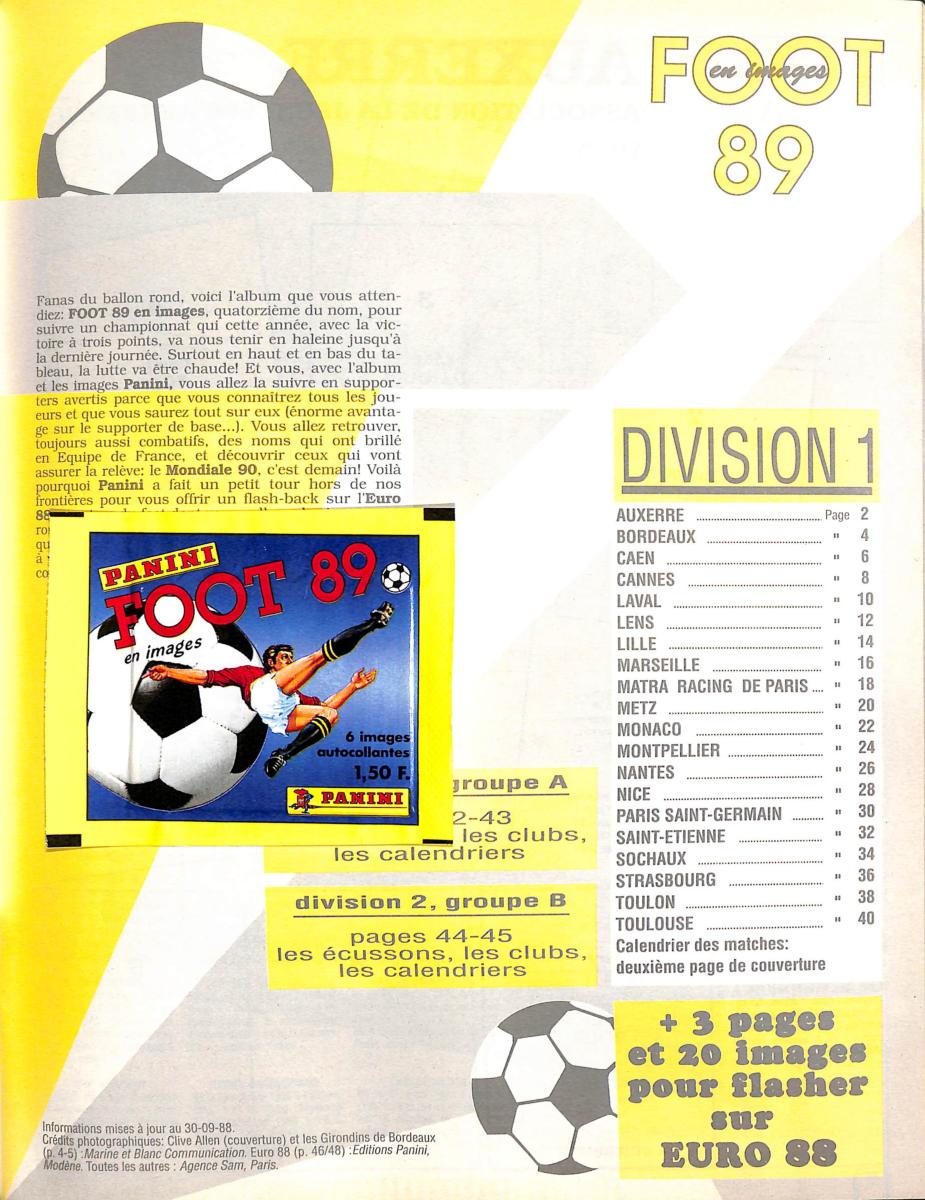 ALBUM PANINI VIDE FOOTBALL 1989 DIVISION 1 ET 2 AVEC UN PAQUET DE 6 STICKERS COLLÉS SUR LA PREMIÈRE PAGE. TRÈS BON ÉTAT.