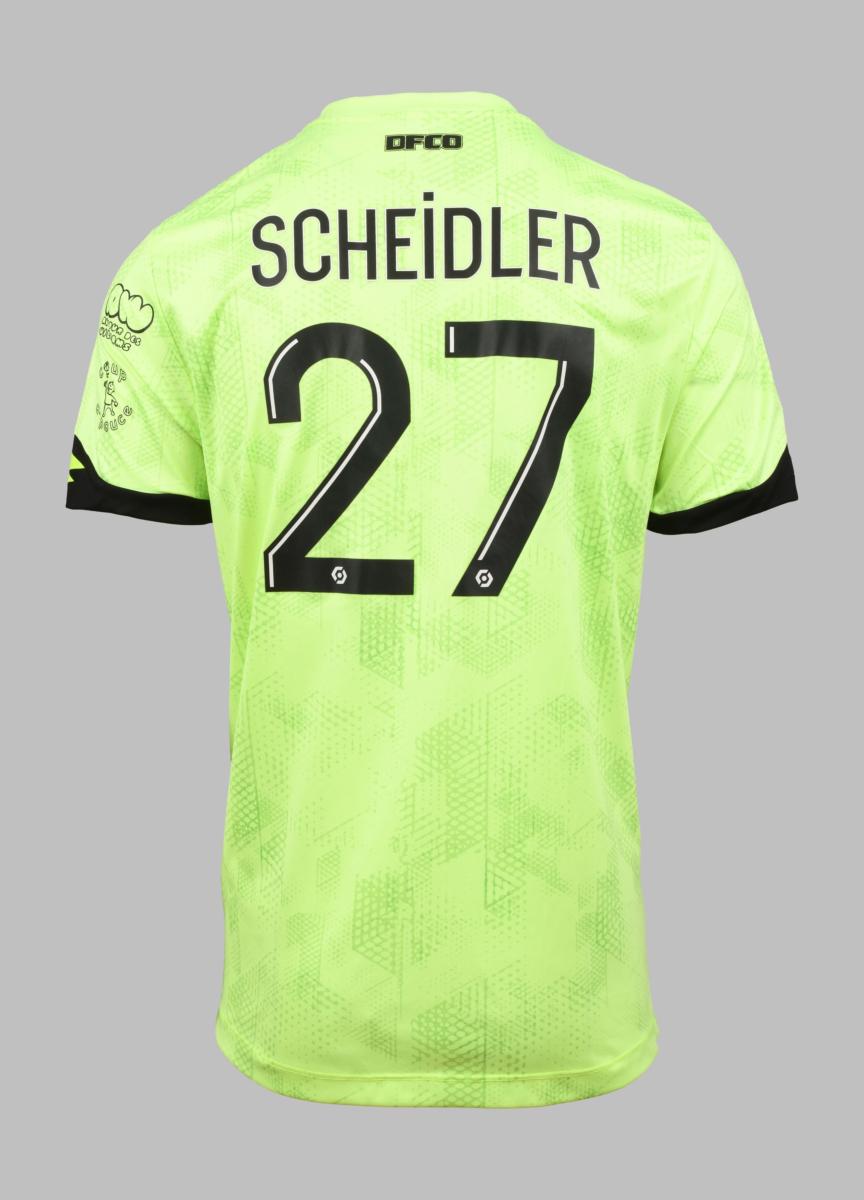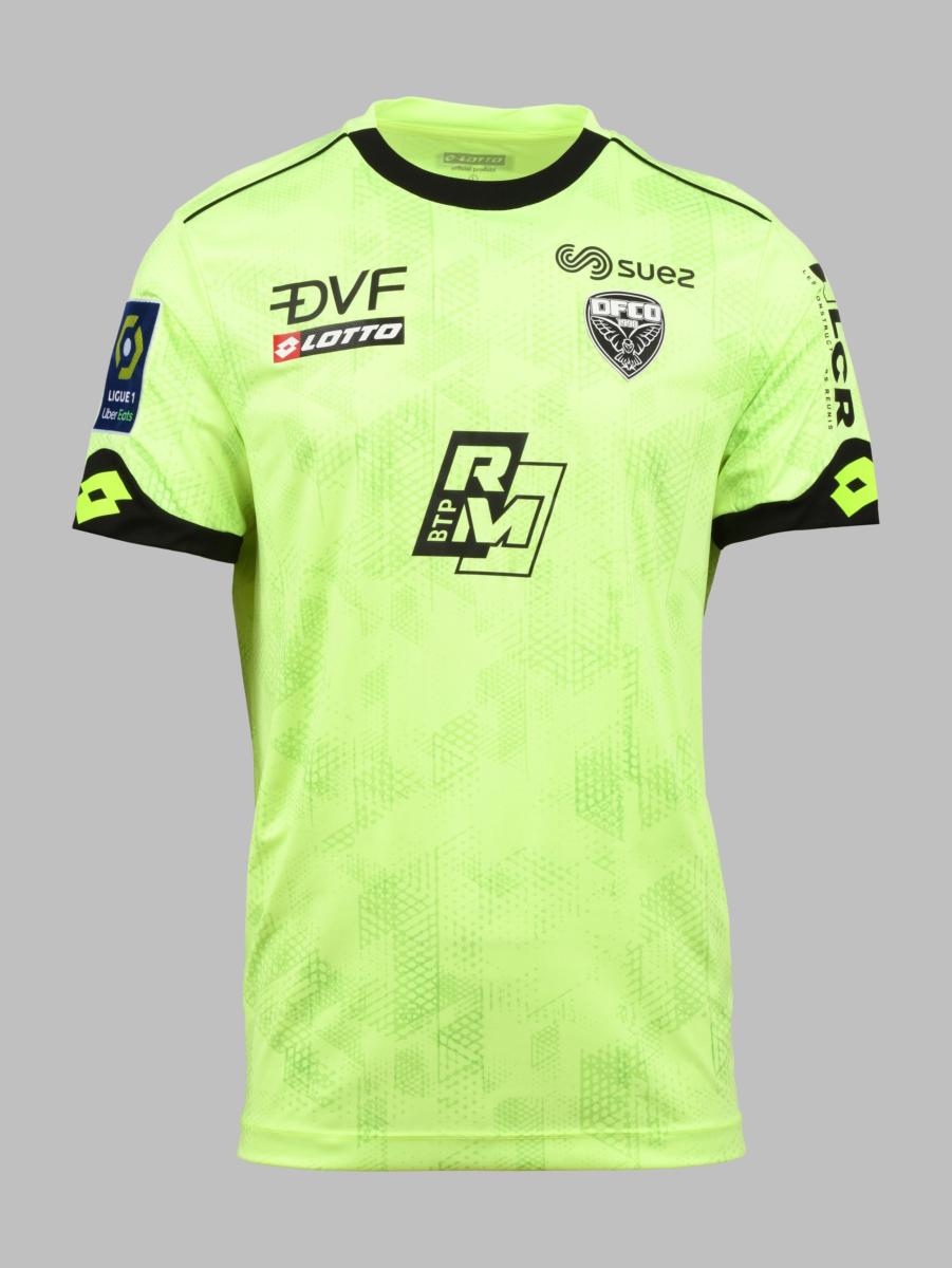 Attaquant. Maillot N°27 du Dijon Football Côte d'Or préparé pour la saison 2020-2021 du Championnat de France de Ligue 1. Le joueur participe à 10 rencontres. Marque Lotto. Taille L. Maillot préparé (match issued shirt).