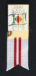 BADGE DE LA 101ÈME SESSION DU CIO AVEC SON RUBAN EN BRONZE DORÉ ET ÉMAIL DU CONGRÈS DE MONACO 1993 POUR LES JO DE 2000. DIMENSIONS 35 x 54 mm. État d'usage. |