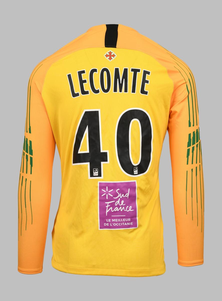 Gardien. Maillot N°40 du Montpellier Hérault Sport Club préparé pour le match de la 35ème journée du Championnat de France de Ligue 1 contre Amiens le 5 mai 2019. Match nul 1-1. Marque Nike. Modèle Dri-Fit. Fabriqué en Indonésie. Taille M. Maillot préparé (match issued shirt).