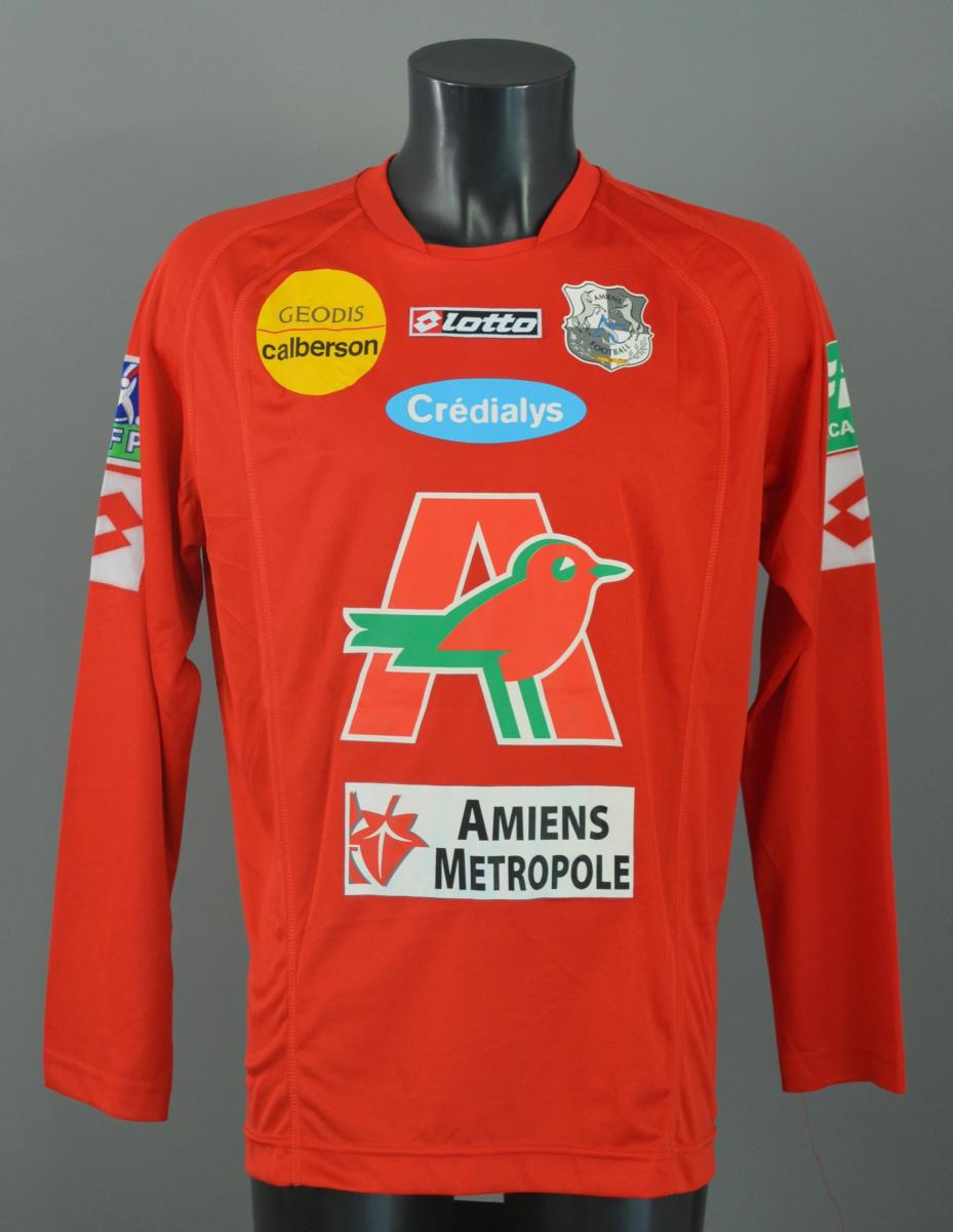 Maillot N°16 du Amiens SC pour la saison 2008-2009 du Championnat de France de Ligue 2. Match à déterminer. Marque Lotto. Fabriqué en Turquie. Taille XXL. Maillot préparé (match issued shirt).
