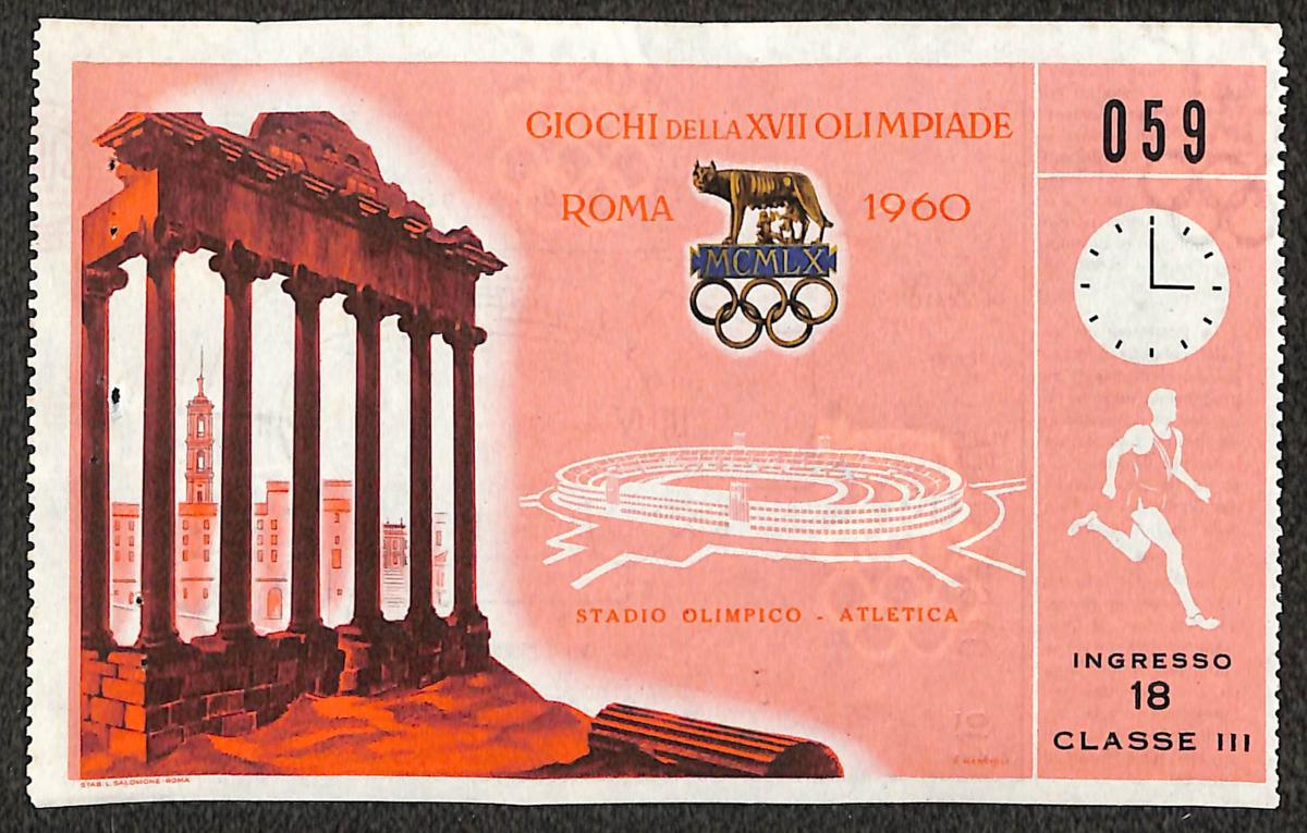 Billet des Jeux Olympiques de Rome 1960. Épreuves d'athlétisme.