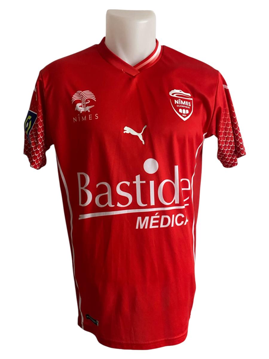 Maillot N°3 du Nîmes Olympique préparé pour la saison 2020-2021 du championnat de France de Ligue 1. Match à déterminer. Le joueur joue 26 matchs. Marque Puma. Taille M.