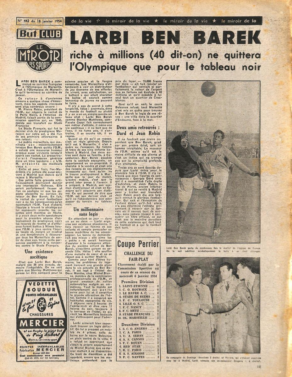 BUT ET CLUB LE MIROIR DES SPORTS SUPPLÉMENT AU N°442 DU 18 JANVIER 1954
