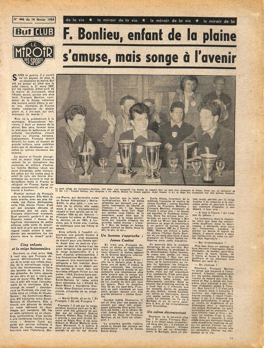 BUT ET CLUB LE MIROIR DES SPORTS SUPPLÉMENT AU N°446 DU 14 FÉVRIER 1954