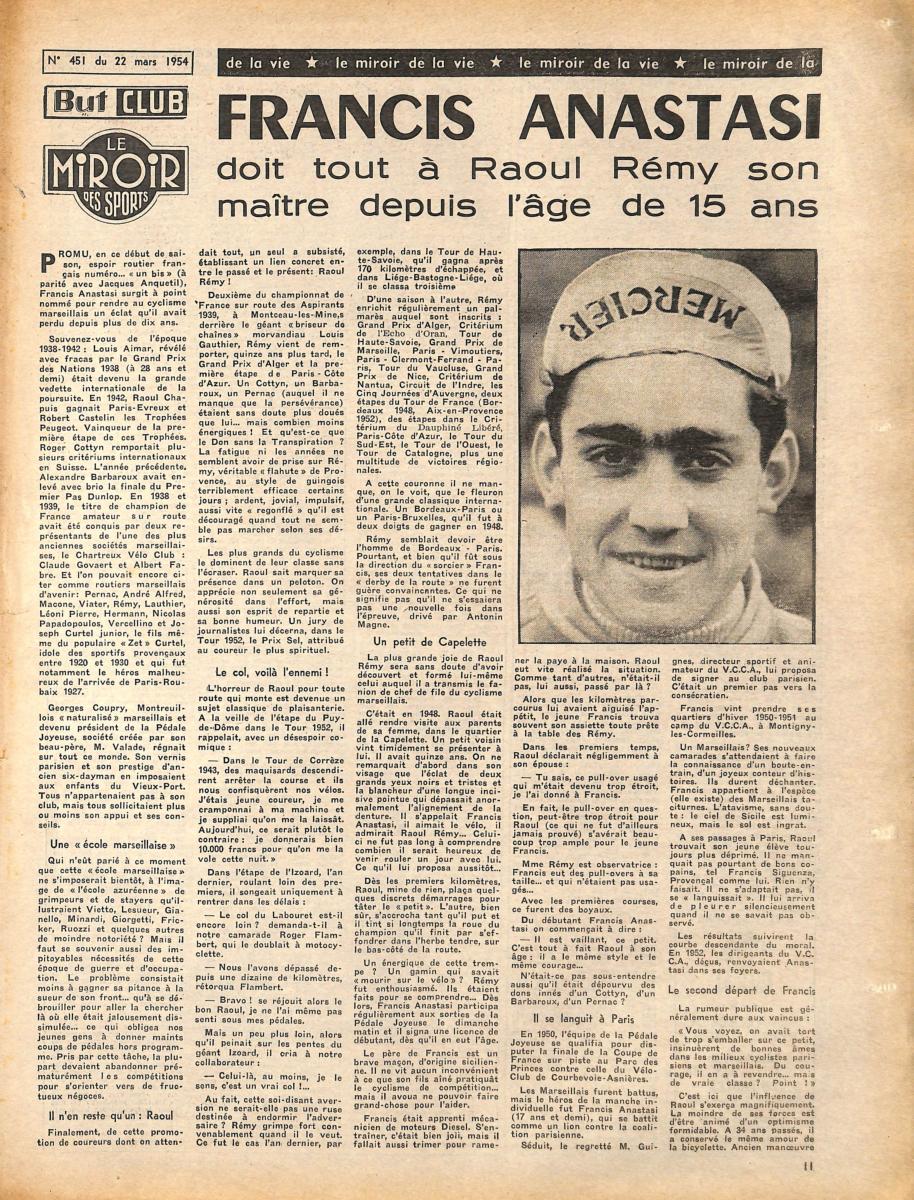 BUT ET CLUB LE MIROIR DES SPORTS SUPPLÉMENT AU N°451 DU 22 MARS 1954