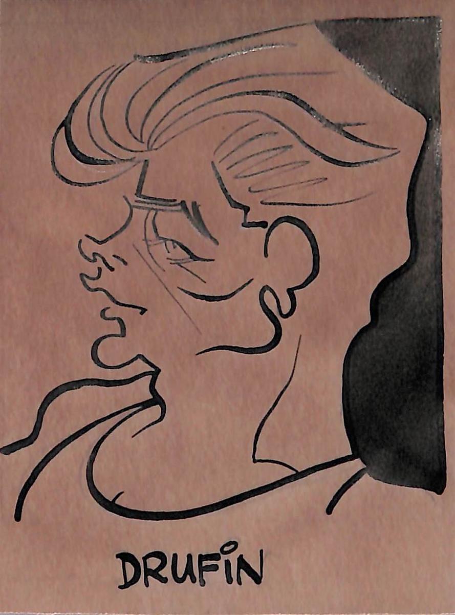 Dessin original d'Alain DRUFIN (lancer du poids et du disque) signé Pierre Rollot dit SIRO (1914-2005) à l'encre sur papier calque. Format 8x10,5 cm. Bon état.