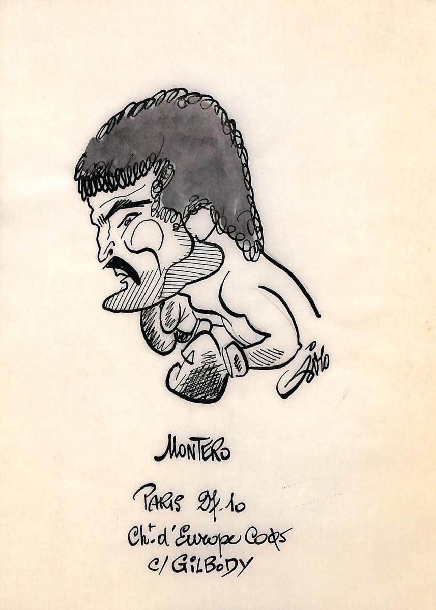 Dessin original d'Antoine MONTERO (Poids mouches à coqs) signé Pierre Rollot dit SIRO (1914-2005) à l'encre sur papier calque. Format 15x21 cm. Bon état.