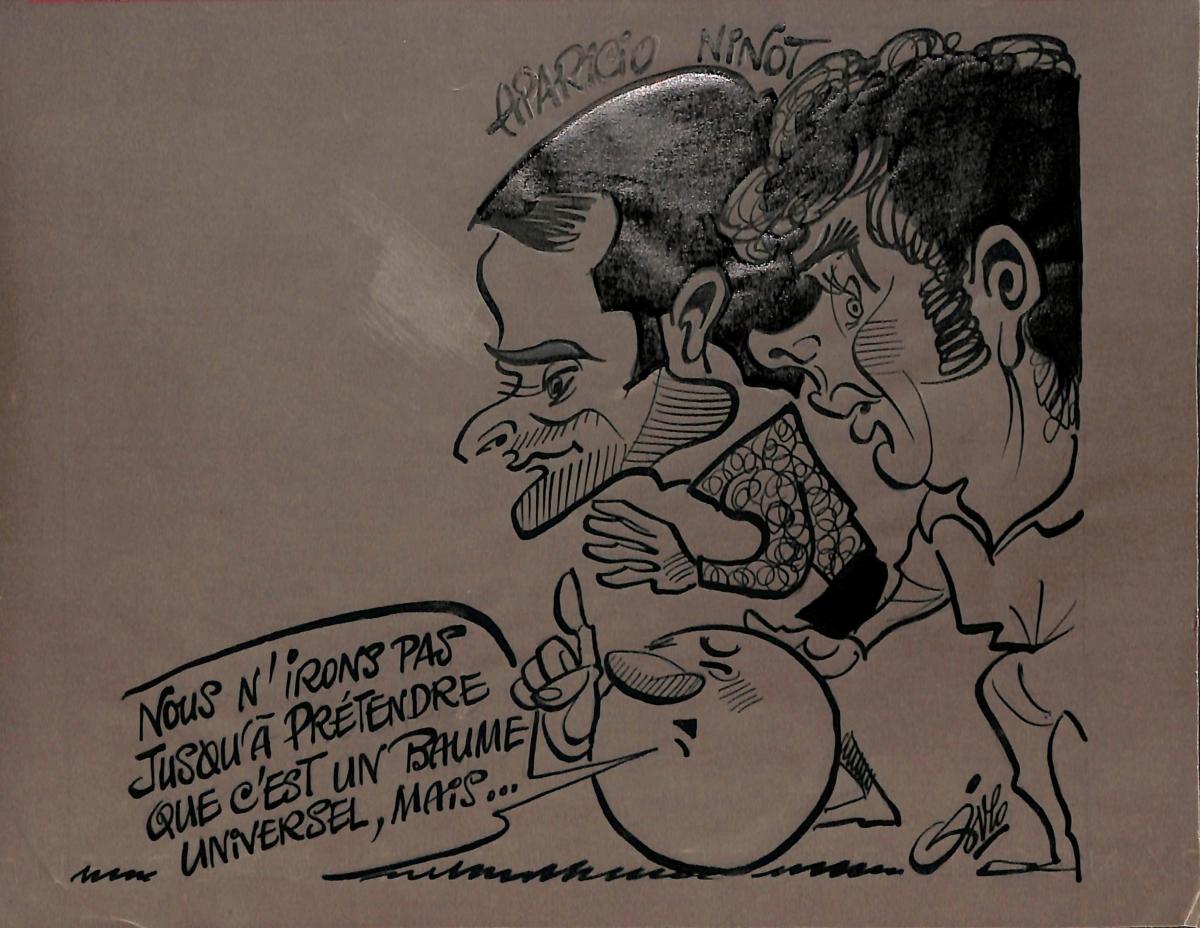 DESSIN ORIGINAL D'APARICIO ET NINOT (BAUME-LES-DAMES) SIGNÉ PIERRE ROLOT DIT SIRO (1914-2005) À L'ENCRE SUR PAPIER CALQUE. Format 16x21 cm. Bon état.