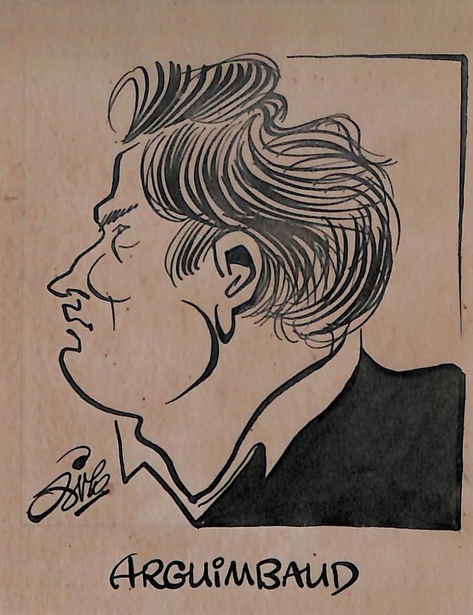 Dessin original d'ARGUIMBAUD signé Pierre Rollot dit SIRO (1914-2005) à l'encre sur papier calque. Format 8x10,5 cm. Bon état.
