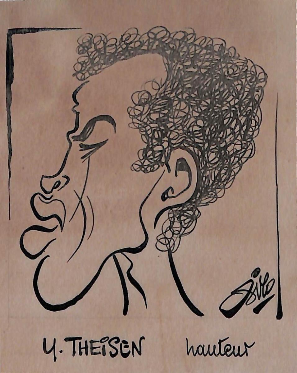 Dessin original d'Y.THEISEN (Saut en hauteur) signé Pierre Rollot dit SIRO (1914-2005) à l'encre sur papier calque. Format 8,5x10,5 cm. Bon état.