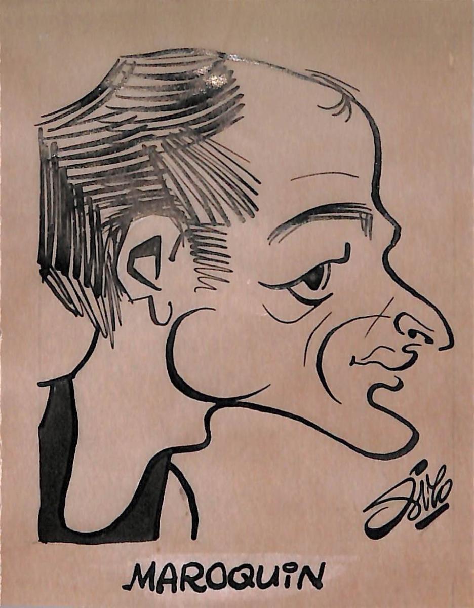 Dessin original de Bernard MAROQUIN (Courses de fond) signé Pierre Rollot dit SIRO (1914-2005) à l'encre sur papier calque. Format 8x10,5 cm. Bon état.