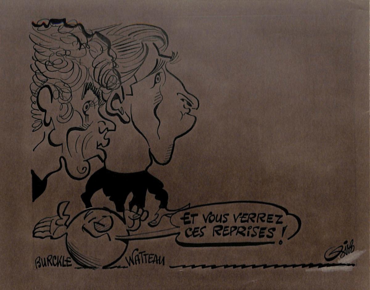 DESSIN ORIGINAL DE BURCKLÉ ET WATTEAU (SOCHAUX) SIGNÉ PIERRE ROLOT DIT SIRO (1914-2005) À L'ENCRE SUR PAPIER CALQUE. Format 16x21 cm. Bon état.