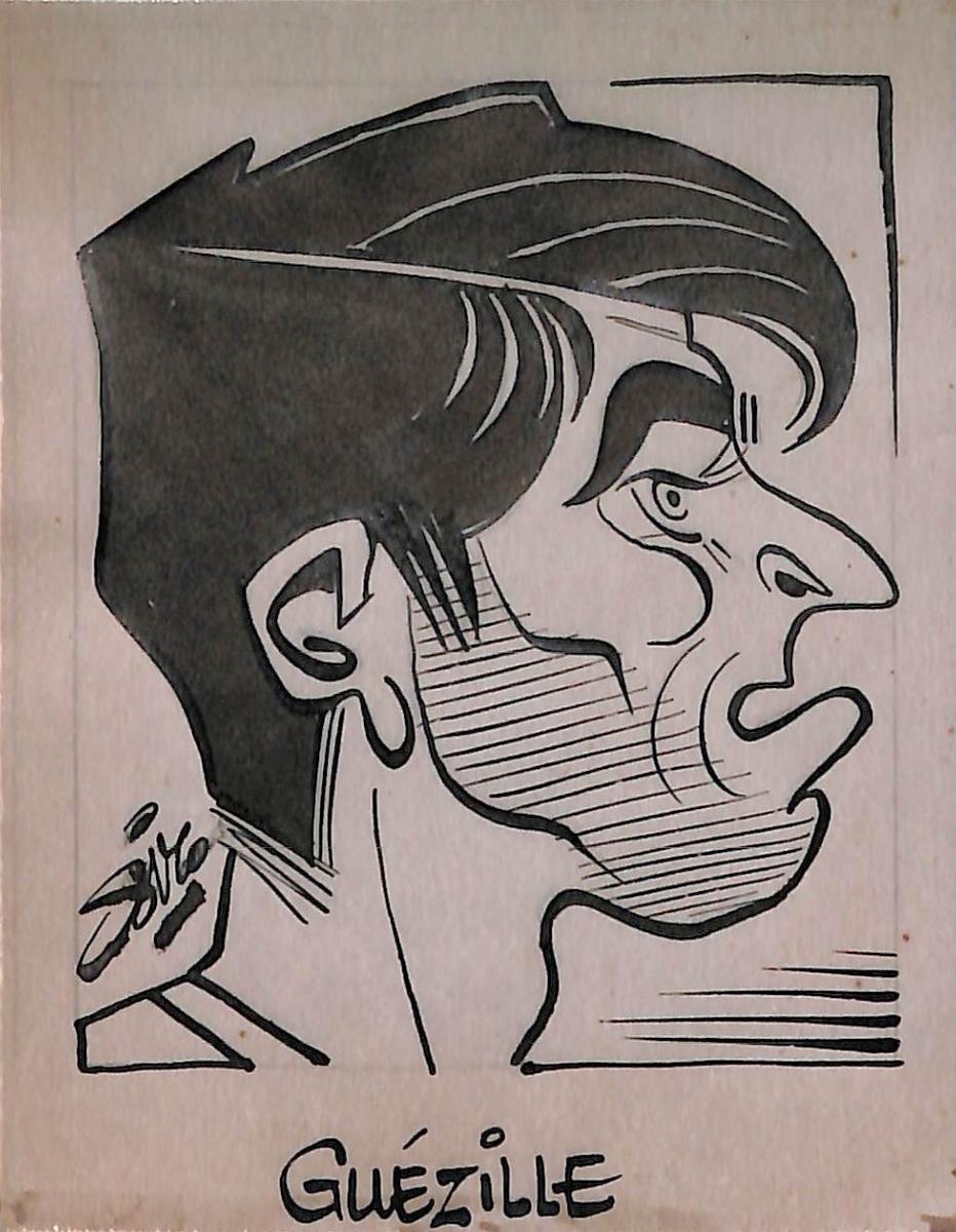 Dessin original de Charles GUEZILLE (Saut en longueur) signé Pierre Rollot dit SIRO (1914-2005) à l'encre sur papier calque. Format 8,5x10,5 cm. Bon état.