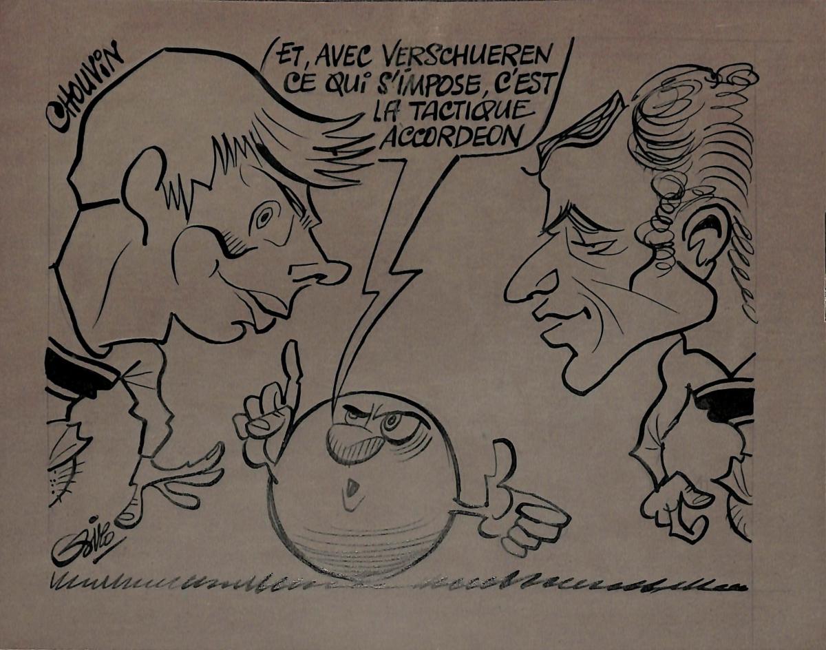 DESSIN ORIGINAL DE CHOUVIN ET VERSCHUEREN (LILLE) SIGNÉ PIERRE ROLOT DIT SIRO (1914-2005) À L'ENCRE SUR PAPIER CALQUE. Format 16x21 cm. Bon état.