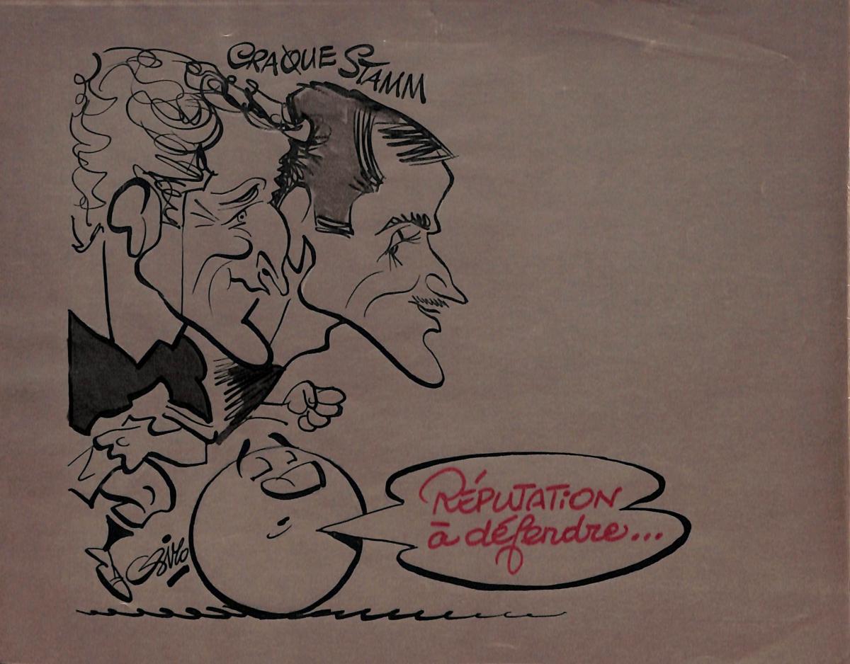 DESSIN ORIGINAL DE CRAQUE ET STAMM (QUEVILLY) SIGNÉ PIERRE ROLOT DIT SIRO (1914-2005) À L'ENCRE SUR PAPIER CALQUE. Format 16x21 cm. Bon état.