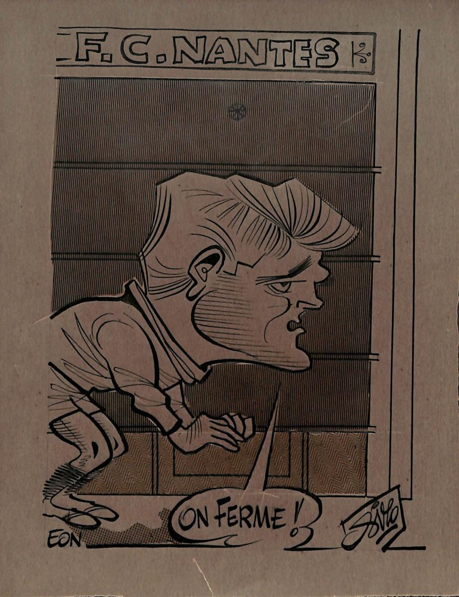 DESSIN ORIGINAL DEDANIEL EON (F.C. NANTES) SIGNÉ PIERRE ROLOT DIT SIRO (1914-2005) À L'ENCRE SUR PAPIER CALQUE. Format 16x21 cm. Bon état.