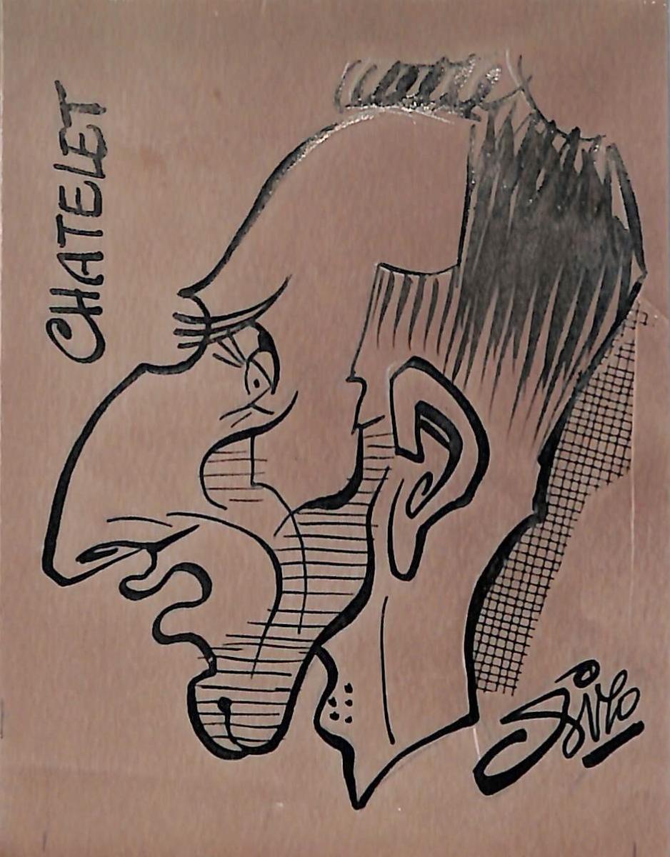 Dessin original de François CHATELET (800 mètres) signé Pierre Rollot dit SIRO (1914-2005) à l'encre sur papier calque. Format 8x10,5 cm. Bon état.