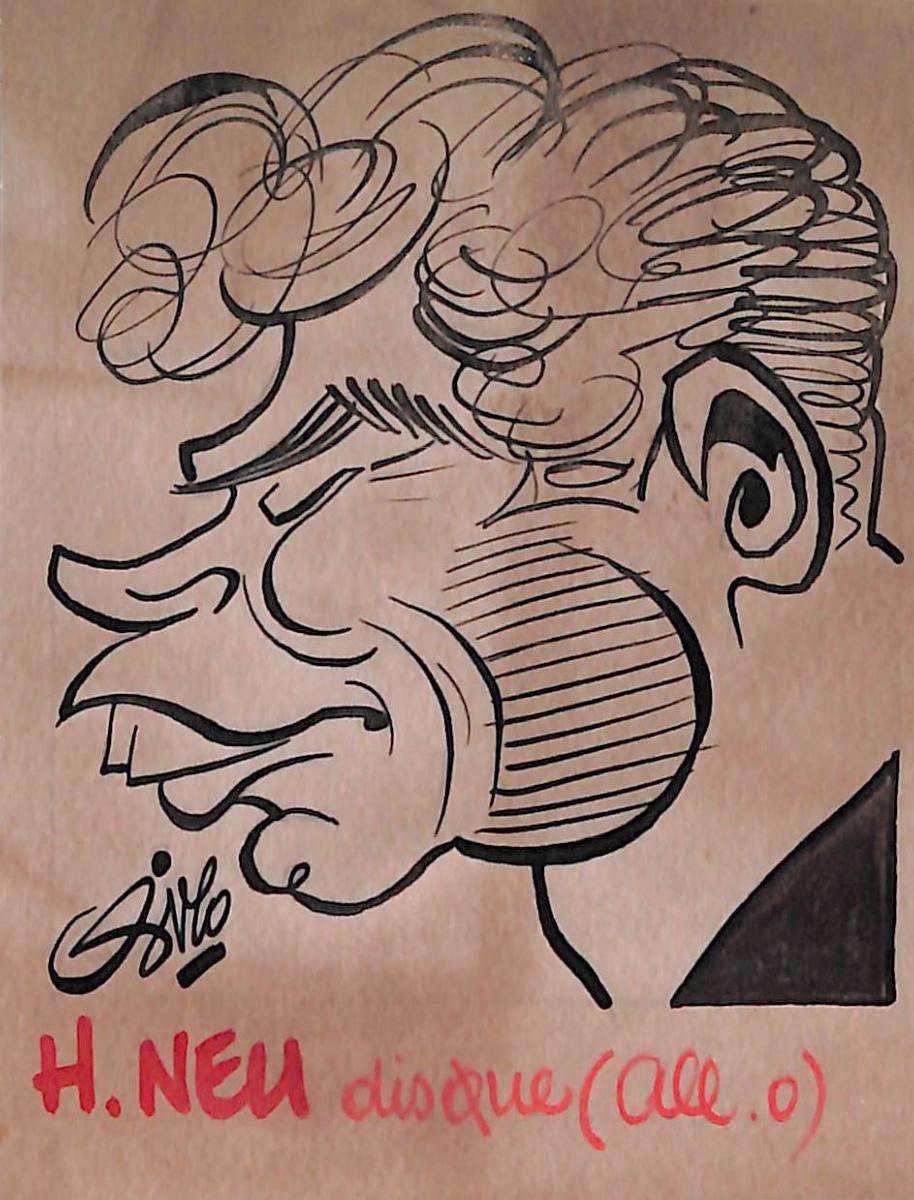 Dessin original de Hein-Direck NEU (Lancer du disque) signé Pierre Rollot dit SIRO (1914-2005) à l'encre sur papier calque. Format 8x10,5 cm. Bon état.