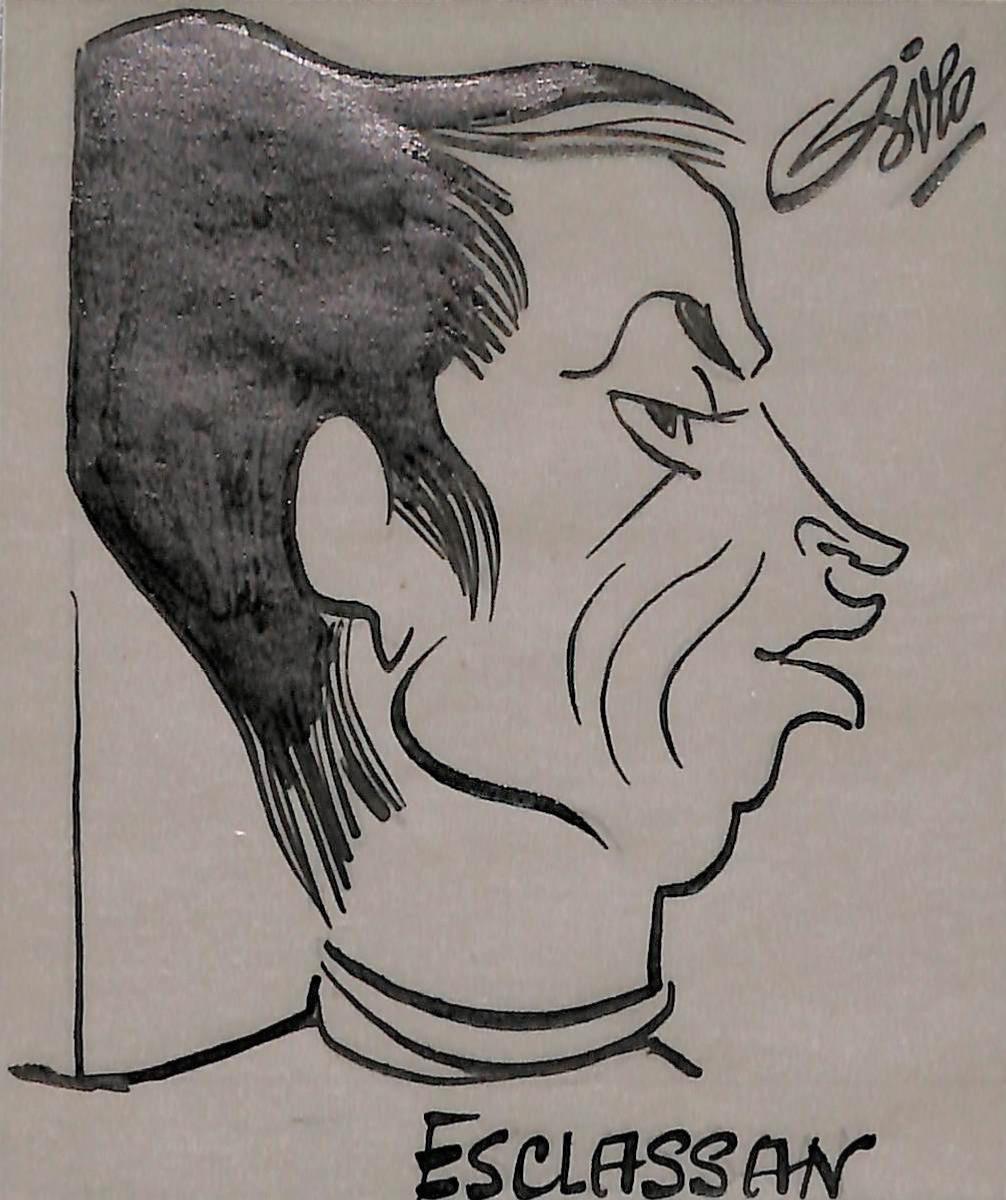 Dessin original de Jacques ESCLASSAN signé Pierre Rollot dit SIRO (1914-2005) à l'encre sur papier calque. Format 8,5x10,5 cm. Bon état.
