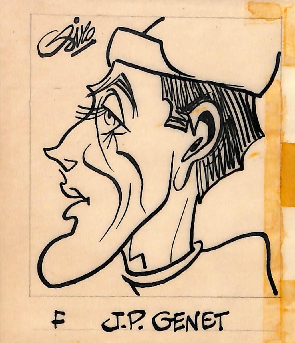 Dessin original de Jean-Pierre GENET signé Pierre Rollot dit SIRO (1914-2005) à l'encre sur papier calque. Format 9x10,5 cm. Bon état.
