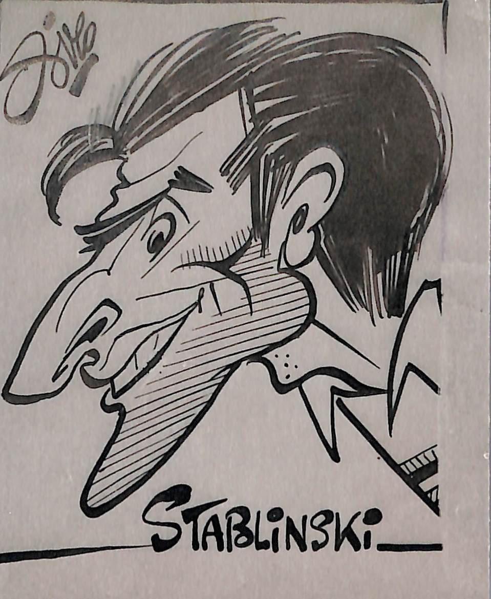 Dessin original de Jean STABLINSKI signé Pierre Rollot dit SIRO (1914-2005) à l'encre sur papier calque. Format 8,5x10 cm. Bon état.
