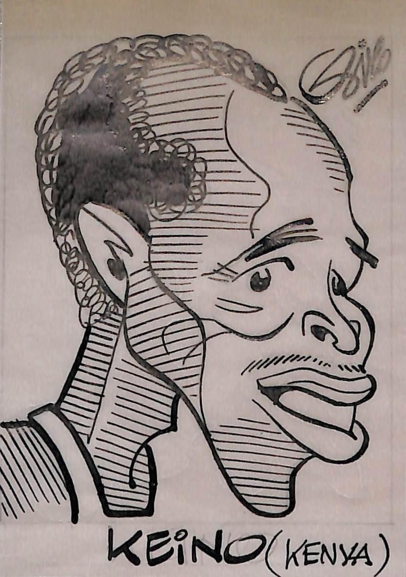 Dessin original de Kipchoge KEINO (Demi-fond) signé Pierre Rollot dit SIRO (1914-2005) à l'encre sur papier calque. Format 7x10 cm. Bon état.