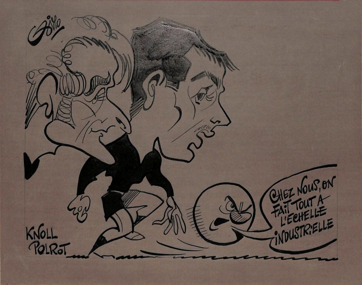 DESSIN ORIGINAL DE KNOLL ET POLROT (FC CREIL) SIGNÉ PIERRE ROLOT DIT SIRO (1914-2005) À L'ENCRE SUR PAPIER CALQUE. Format 16x21 cm. Bon état.