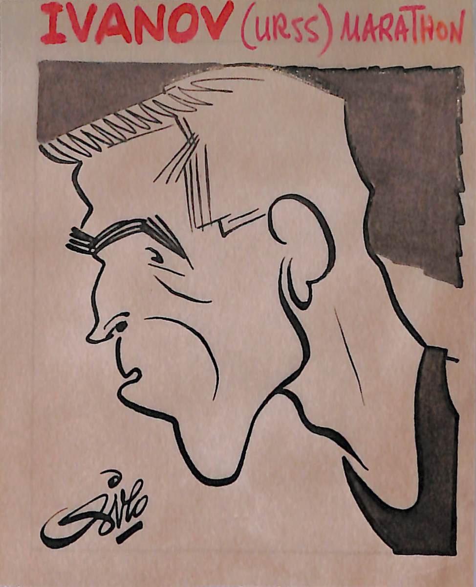 Dessin original de Leonid IVANOV (Marathon) signé Pierre Rollot dit SIRO (1914-2005) à l'encre sur papier calque. Format 8x10 cm. Bon état.