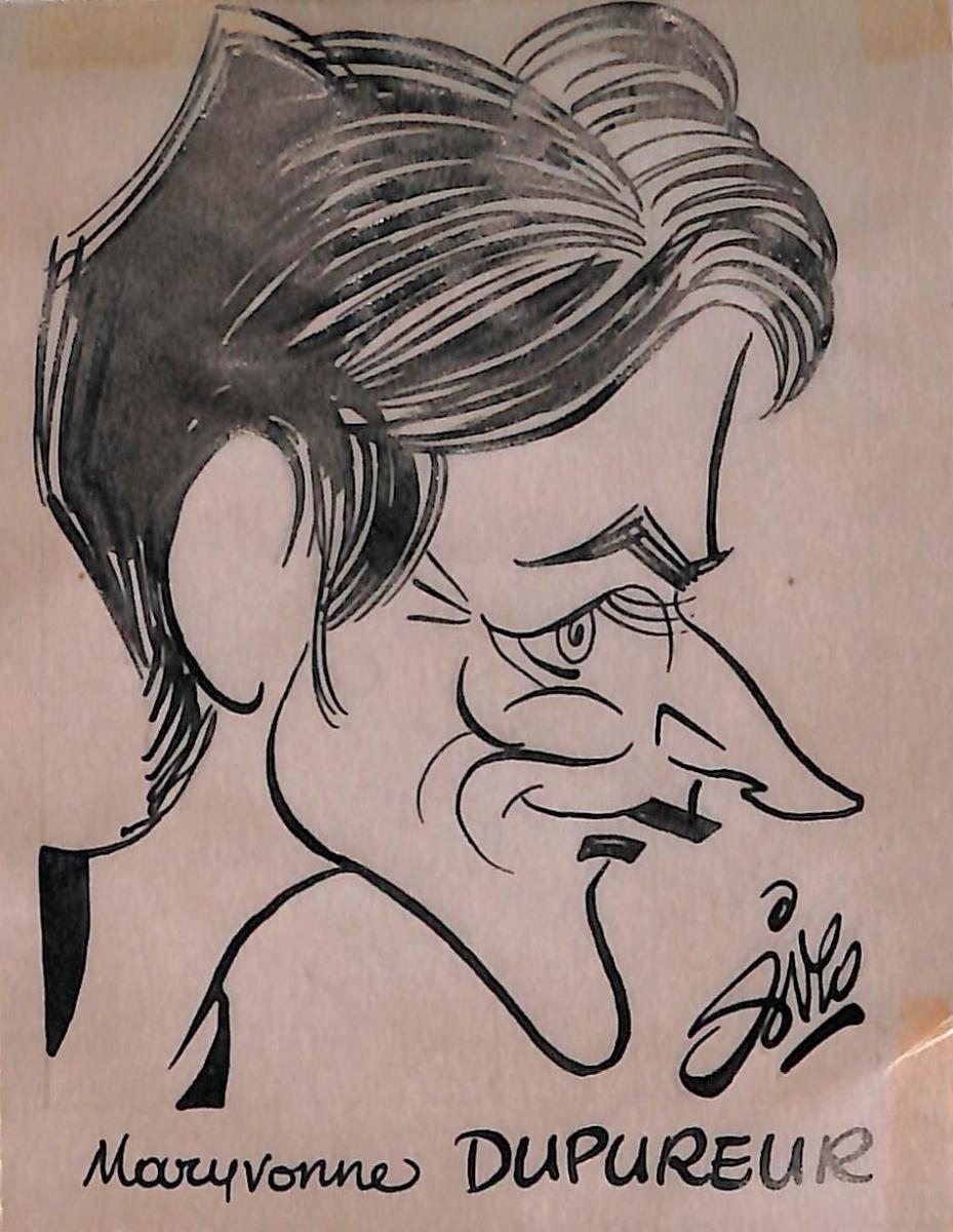 Dessin original de Maryvonne DUPUREUR (Demi-fond) signé Pierre Rollot dit SIRO (1914-2005) à l'encre sur papier calque. Format 8x10,5 cm. Bon état.