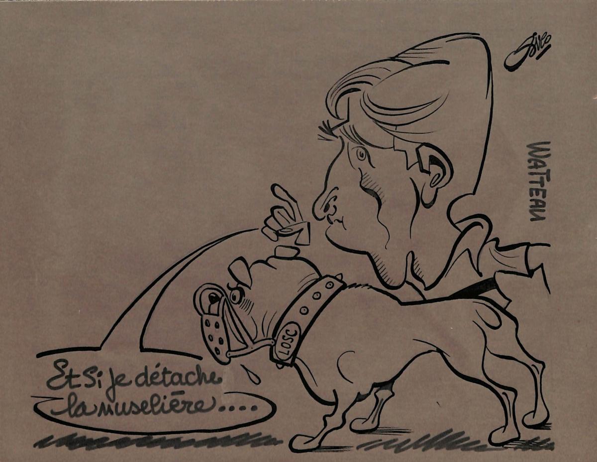 DESSIN ORIGINAL DE MICHEL WATTEAU SIGNÉ PIERRE ROLOT DIT SIRO (1914-2005) À L'ENCRE SUR PAPIER CALQUE. Format 16x21 cm. Bon état.