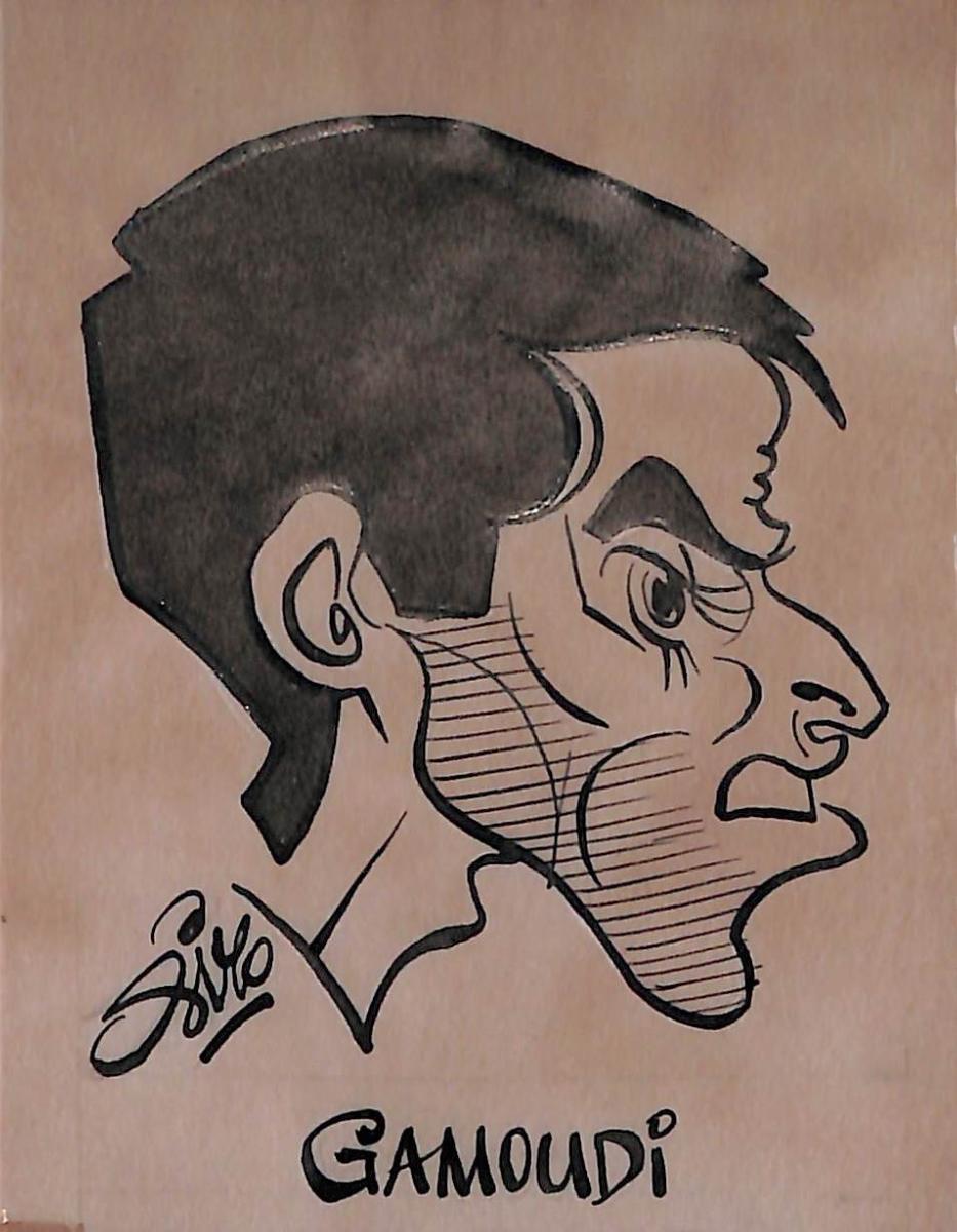 Dessin original de Mohammed GAMMOUDI (Erreur dans l'orthographe sur le dessin) (Courses de fond) signé Pierre Rollot dit SIRO (1914-2005) à l'encre sur papier calque. Format 8x10,5 cm. Bon état.
