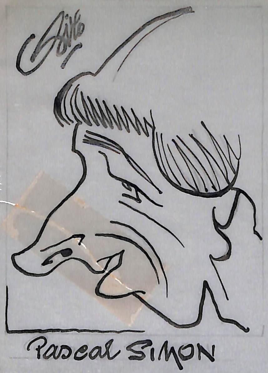 Dessin original de Pascal SIMON signé Pierre Rollot dit SIRO (1914-2005) à l'encre sur papier calque. Format 7,5x10 cm. Bon état.