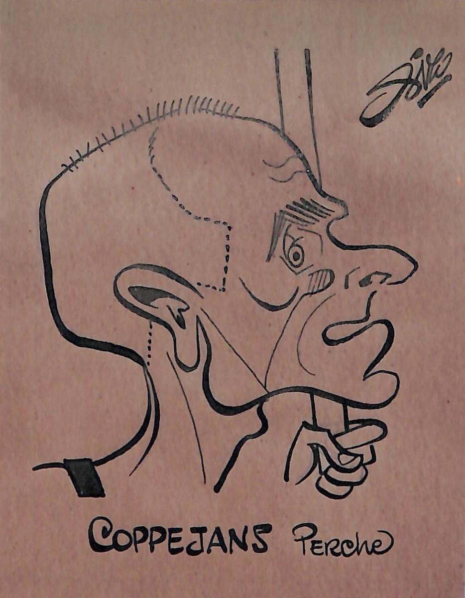 Dessin original de Paul COPPEJANS (Saut à la perche) signé Pierre Rollot dit SIRO (1914-2005) à l'encre sur papier calque. Format 8,5x10,5 cm. Bon état.
