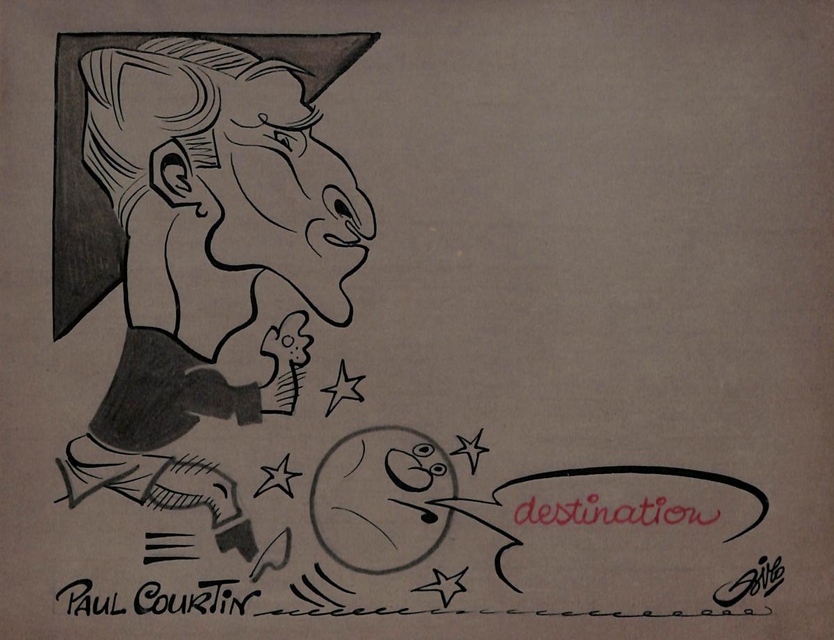 DESSIN ORIGINAL DE PAUL COURTIN SIGNÉ PIERRE ROLOT DIT SIRO (1914-2005) À L'ENCRE SUR PAPIER CALQUE. Format 16x21 cm. Bon état.