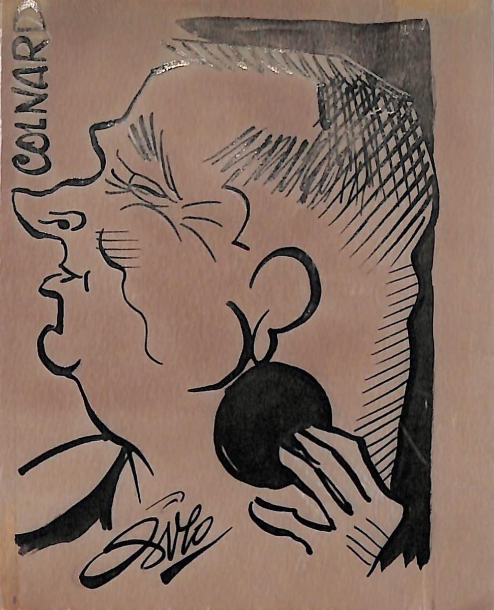 Dessin original de Pierre COLNARD (Lancer du poids) signé Pierre Rollot dit SIRO (1914-2005) à l'encre sur papier calque. Format 8,5x10 cm. Bon état.