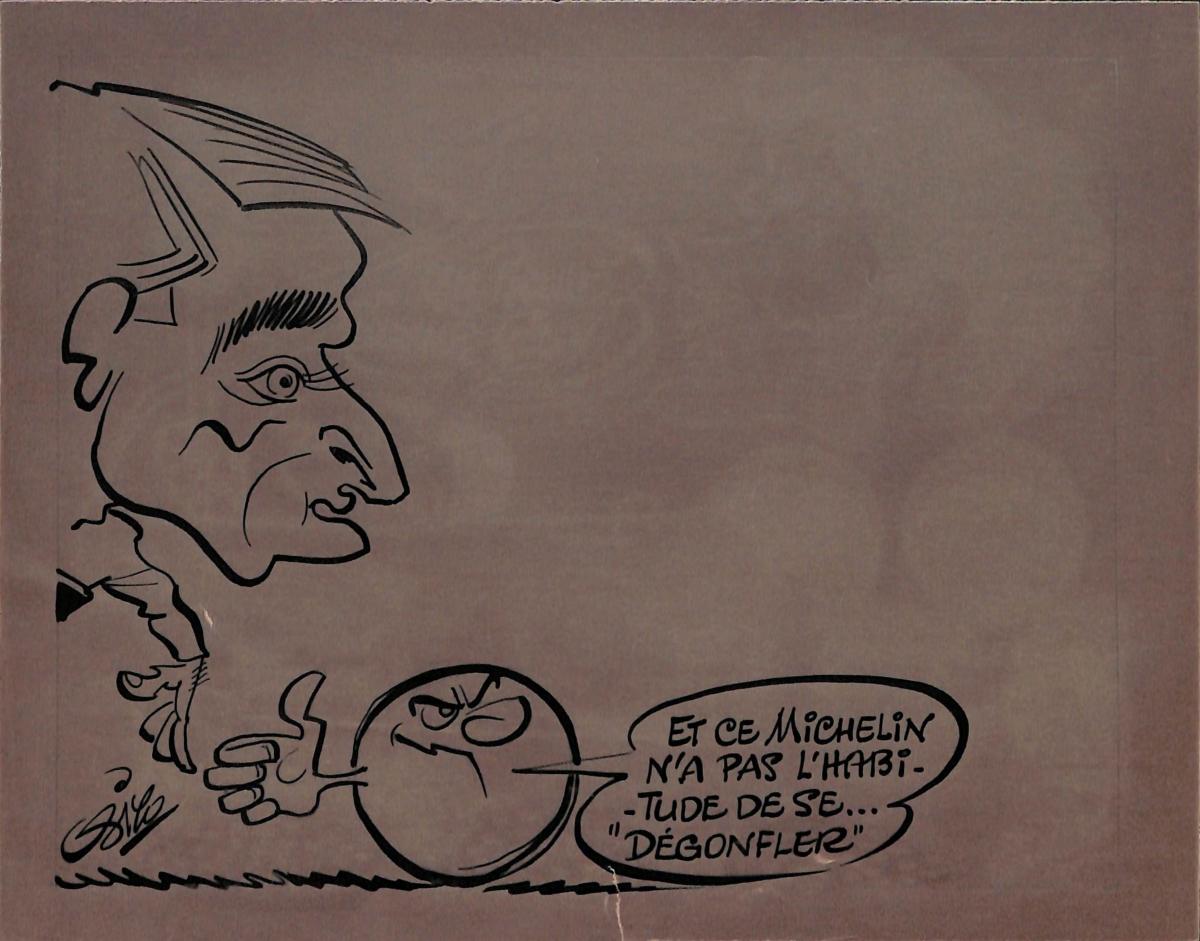 DESSIN ORIGINAL DE PIERRE MICHELIN SIGNÉ PIERRE ROLOT DIT SIRO (1914-2005) À L'ENCRE SUR PAPIER CALQUE. Format 16x21 cm. Bon état.