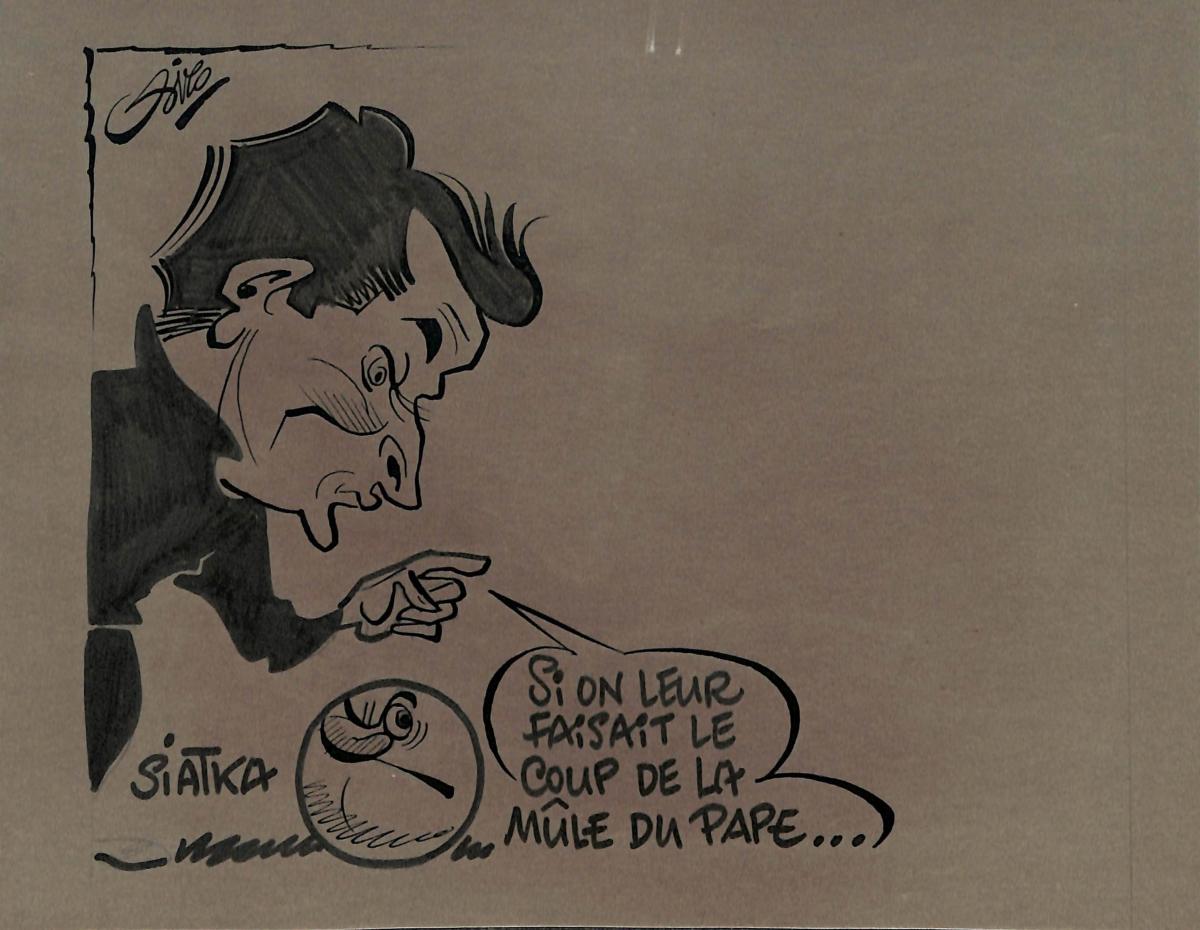 DESSIN ORIGINAL DE ROBERT SIATKA SIGNÉ PIERRE ROLOT DIT SIRO (1914-2005) À L'ENCRE SUR PAPIER CALQUE. Format 16x21 cm. Bon état.