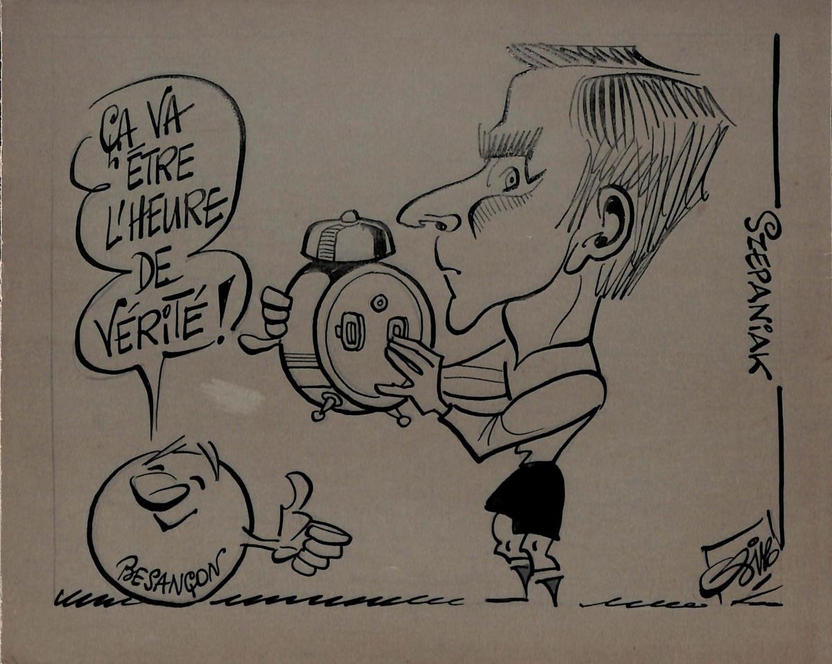 DESSIN ORIGINAL DE ROBERT SZCZEPANIAK (BESANÇON) (ERREUR DANS L'ORTHOGRAPHE SUR LE DESSIN) SIGNÉ PIERRE ROLOT DIT SIRO (1914-2005) À L'ENCRE SUR PAPIER CALQUE. Format 16x21 cm. Bon état.