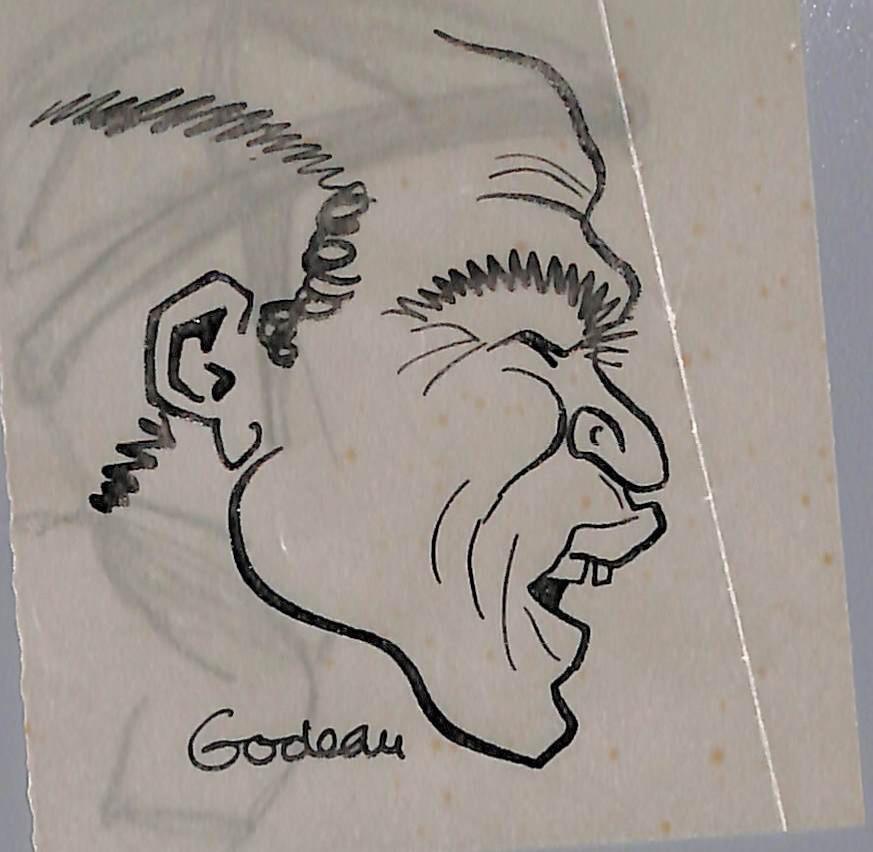 Dessin original de Roger GODEAU par Pierre Rollot dit SIRO (1914-2005) à l'encre sur papier calque. Format 7x7,5 cm. Bon état (non signé).