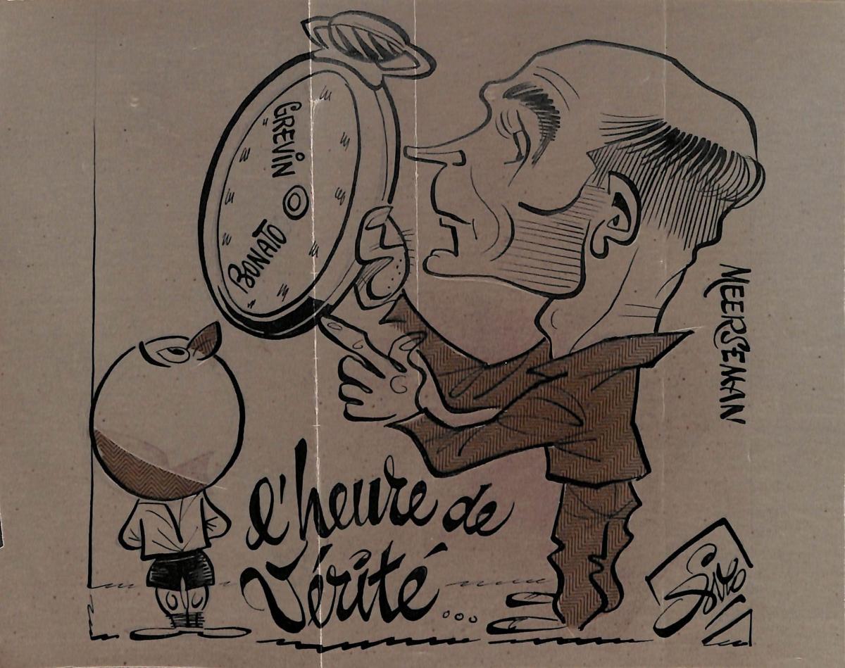 DESSIN ORIGINAL DE ROGER MEERSEMAN SIGNÉ PIERRE ROLOT DIT SIRO (1914-2005) À L'ENCRE SUR PAPIER CALQUE. Format 16x21 cm. Bon état.