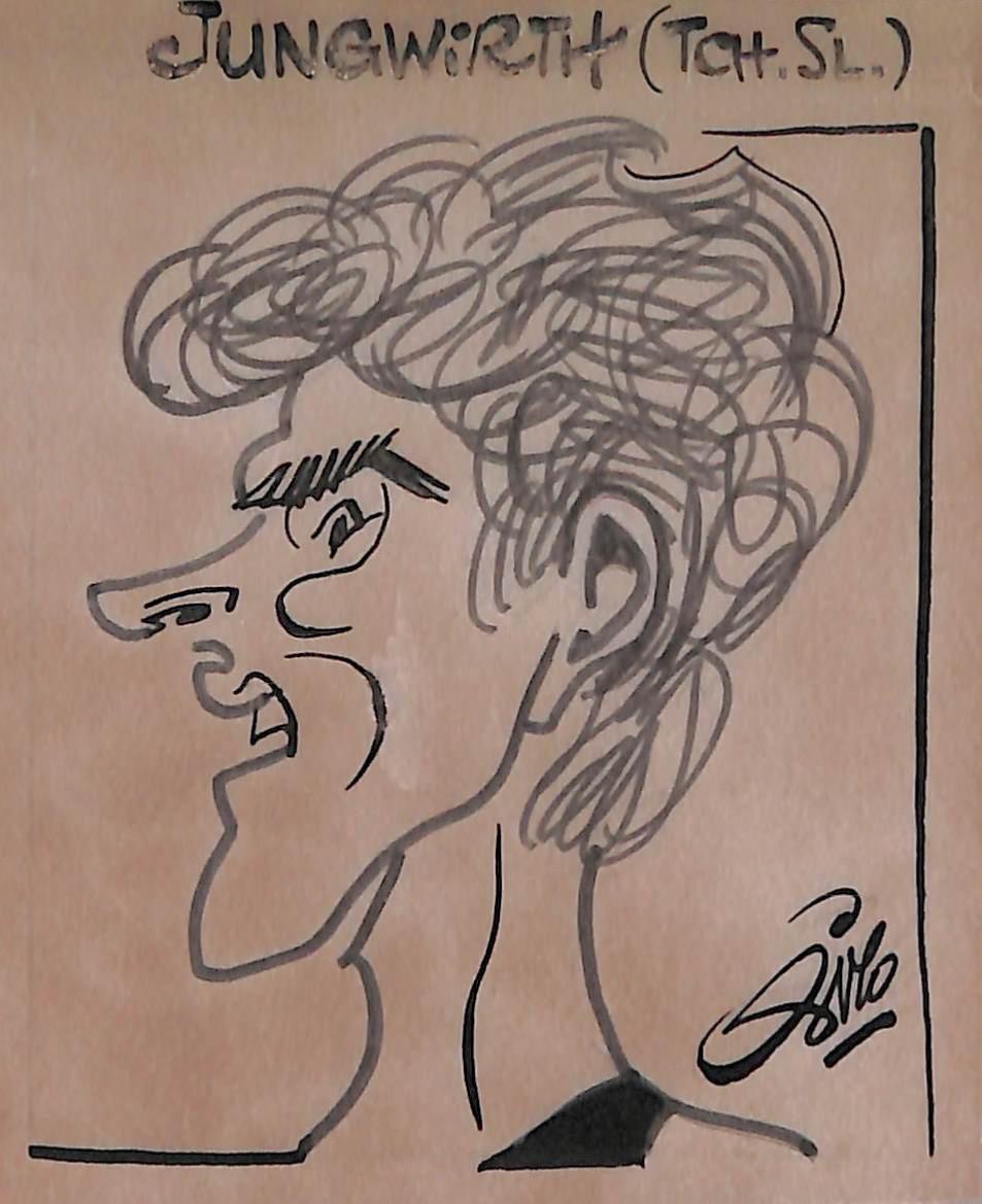 Dessin original de Stanislav JUNGWIRTH (1500 mètres) signé Pierre Rollot dit SIRO (1914-2005) à l'encre sur papier calque. Format 8x10 cm. Bon état.