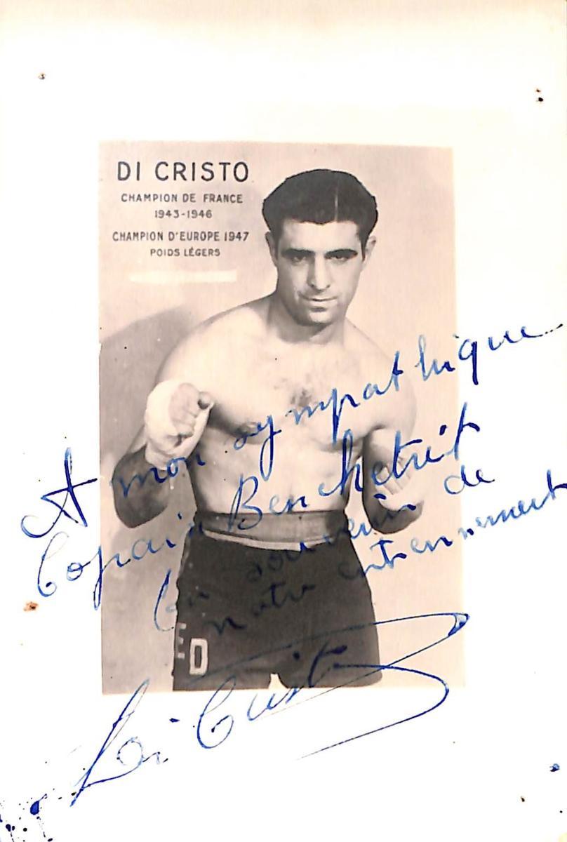 Carte photo dédicacée à Jean Jacques Benchetrit par Emile Di Cristo. Etat d’usage avec trous de punaises