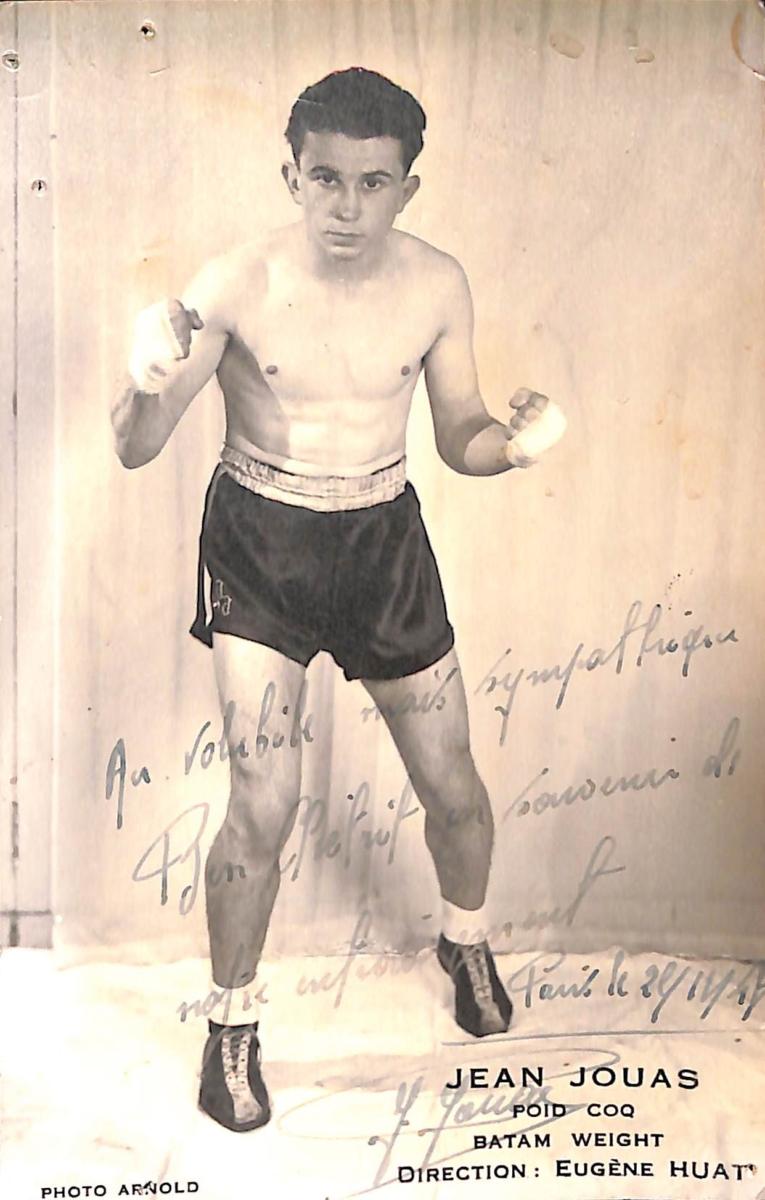 Carte photo dédicacée et datée du 28/11/1947 à Jean Jacques Benchetrit par Jean Jouas. Etat d’usage avec trous de punaises.
