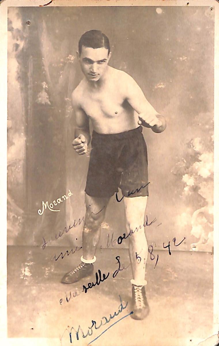 Carte photo dédicacée et datée du 05/08/1942 à Jean Jacques Benchetrit par Joseph Morand. Etat d’usage avec trous de punaises.