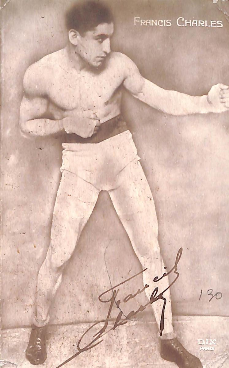 Carte postale dédicacée par Francis Charles. Etat moyen.