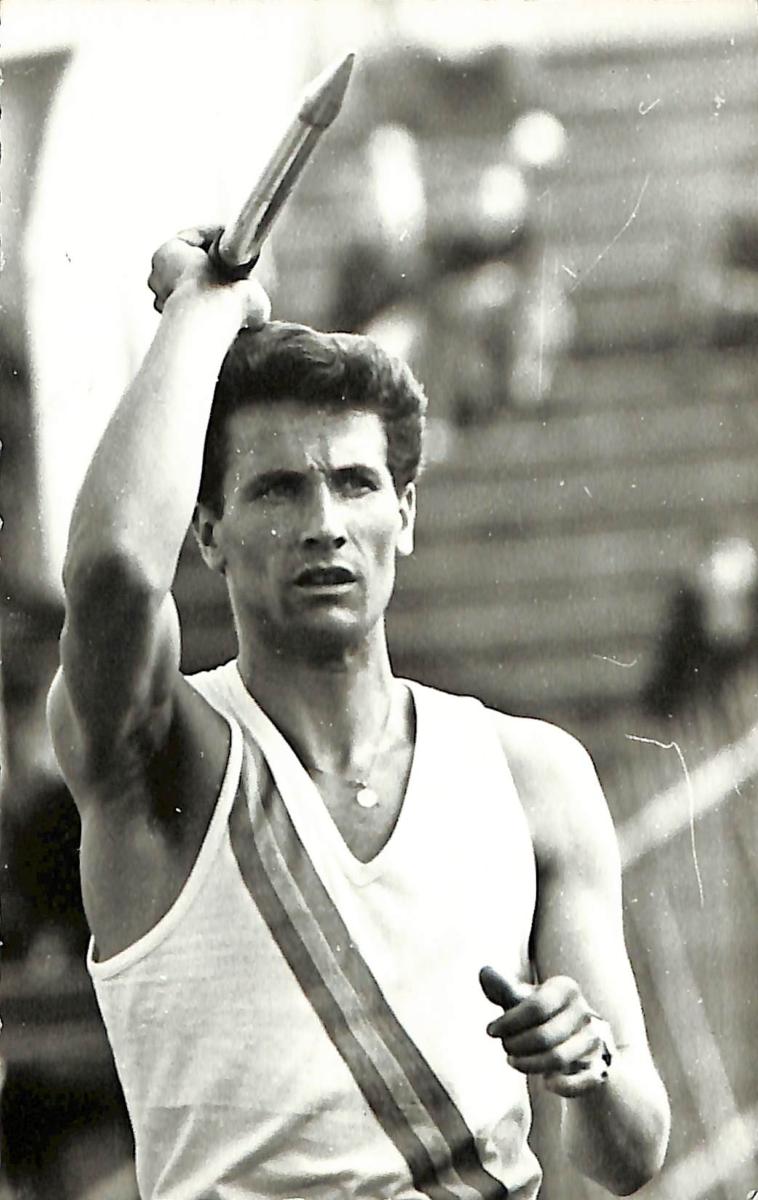 CARTE POSTALE MIROIR SPRINT DE LÉON SYROVATSKI (LANCER DU JAVELOT) ANNÉES 60. Format 8,5 x 14 cm. Bon état.
