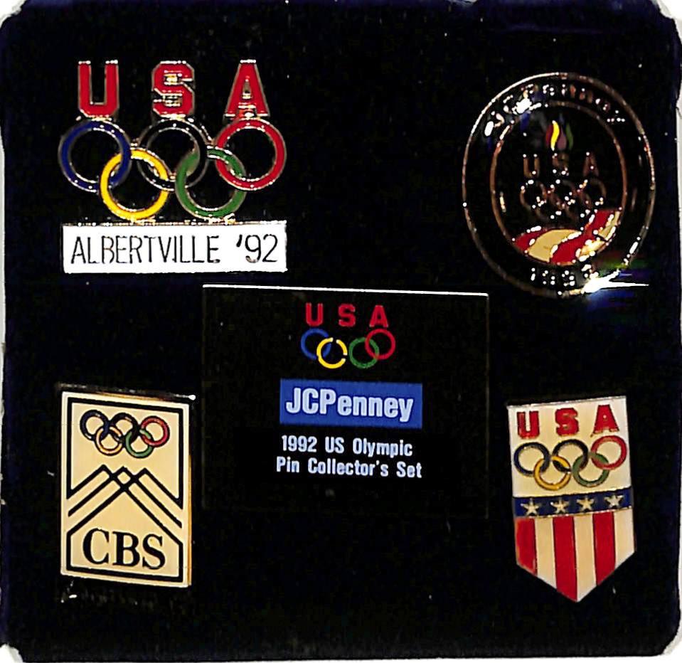 Coffret de 5 pin's USA DES JEUX OLYMPIQUES ALBERTVILLE 1992 OLYMPICS GAMES. Bon état.